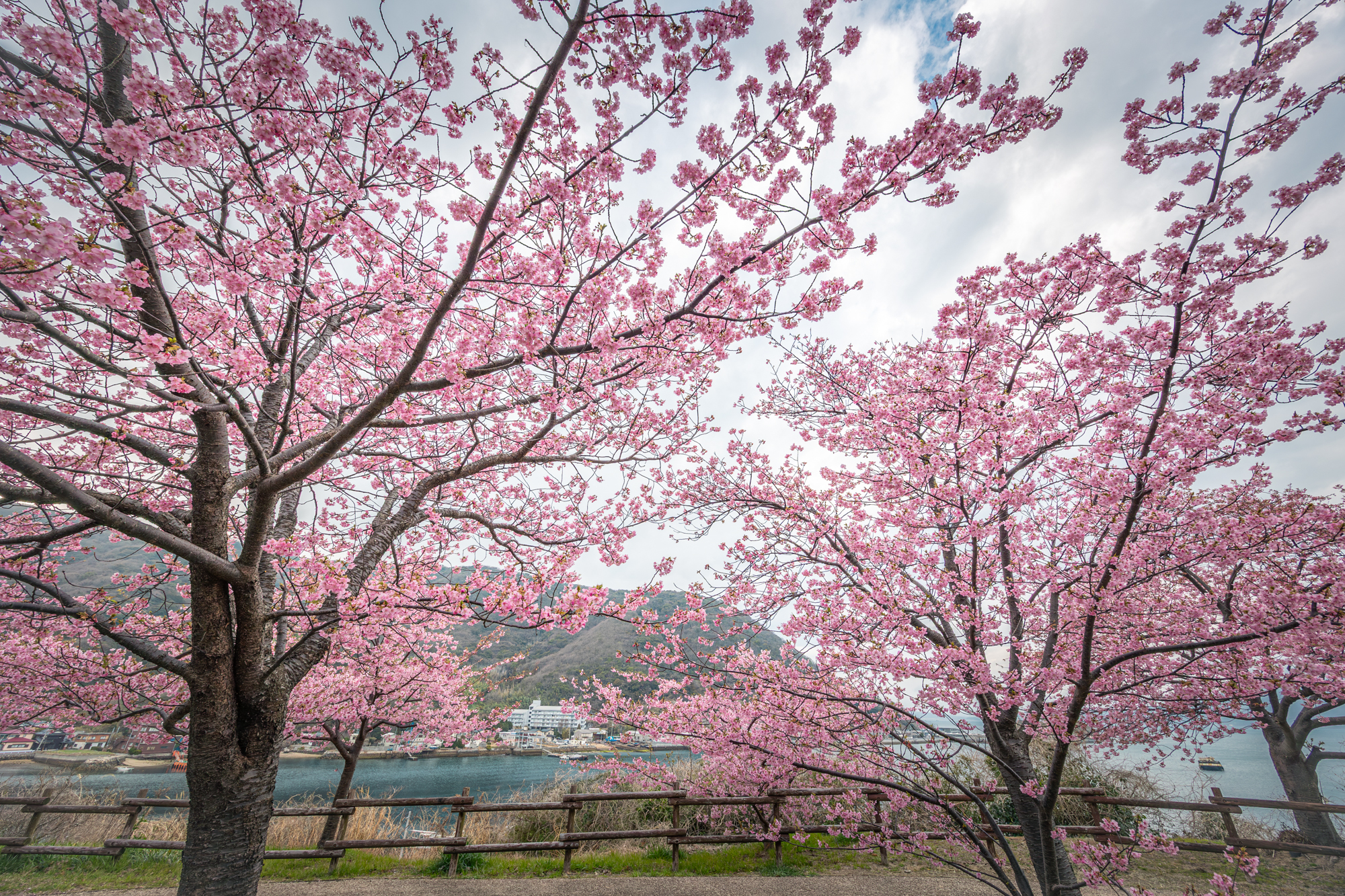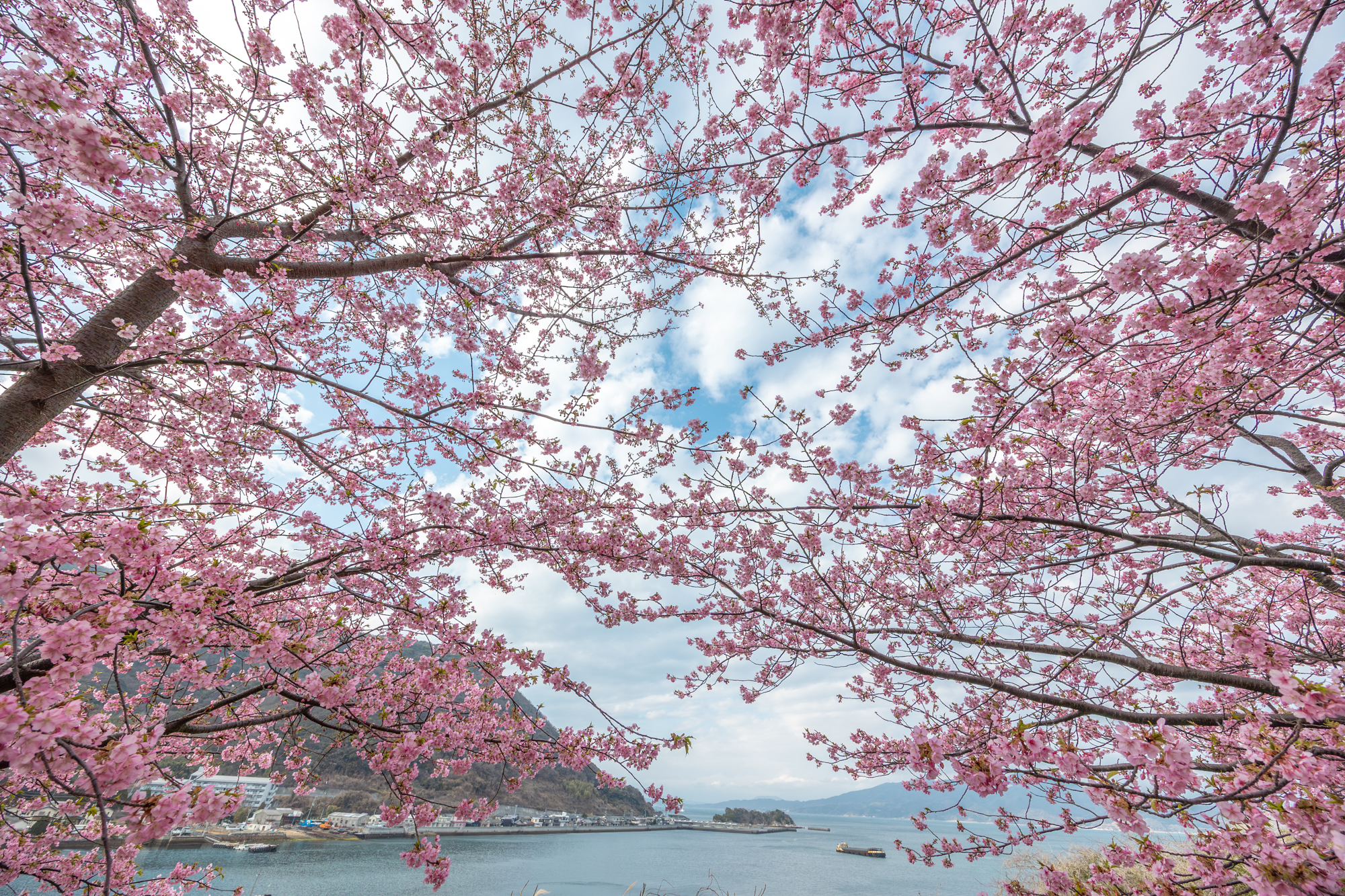 山口県の絶景めぐり【上関町の河津桜】〜海峡と空を背景に映える花の絶景〜
