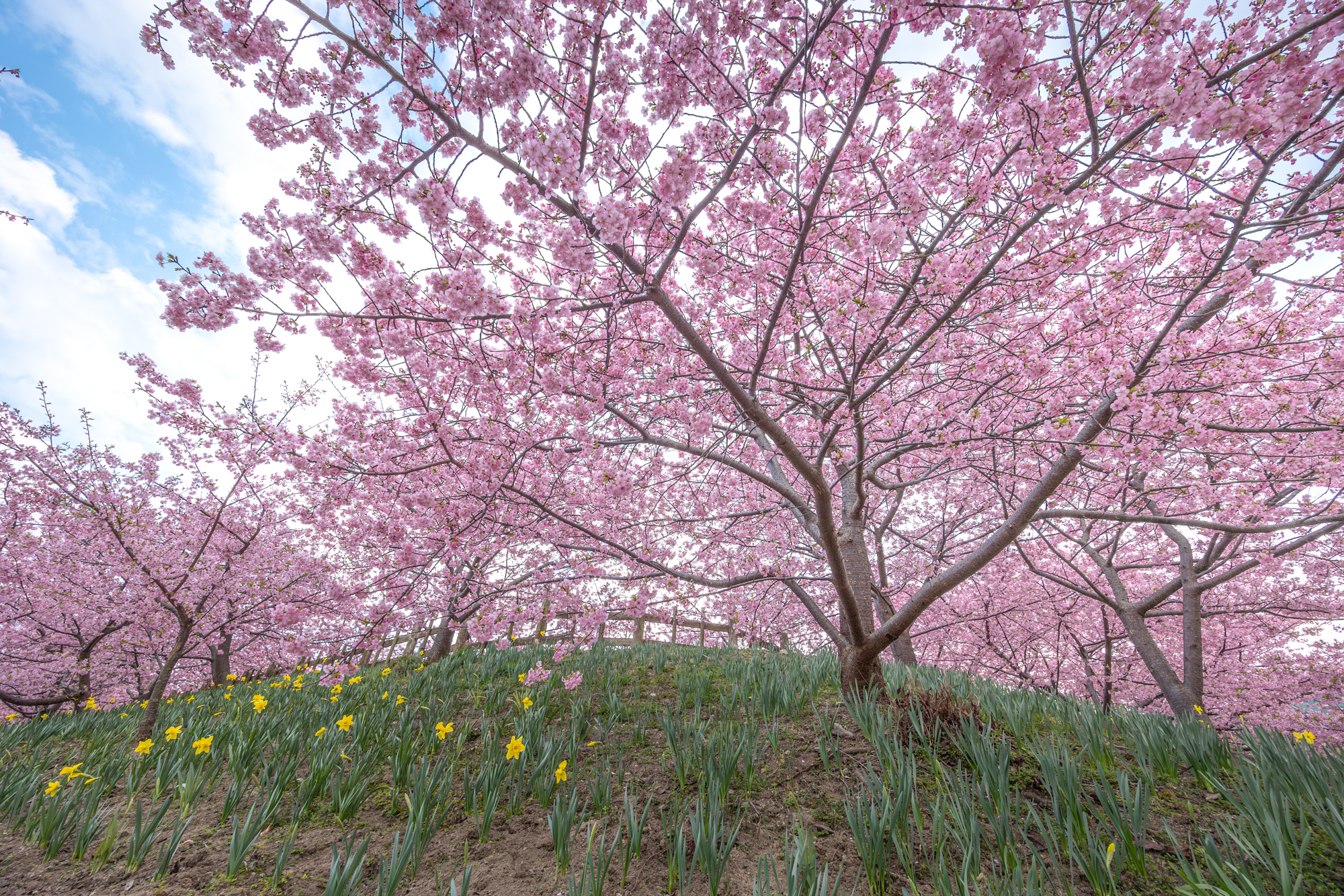 それでもほぼ満開の河津桜に囲まれ、一足先に春を満喫することができました。河津桜はソメイヨシノと違って、花の開花期間が非常に長いのが特徴なのだそう