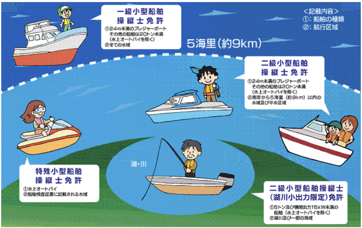 また、いわゆる水上オートバイのようなものは特殊小型船舶免許が別途必要です。