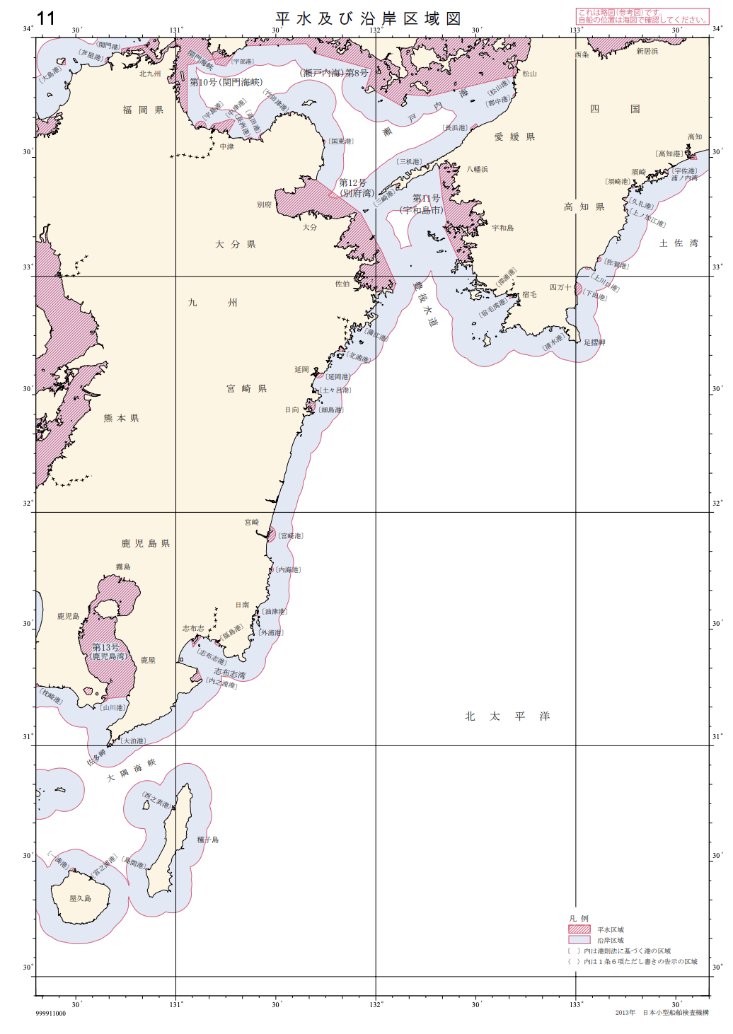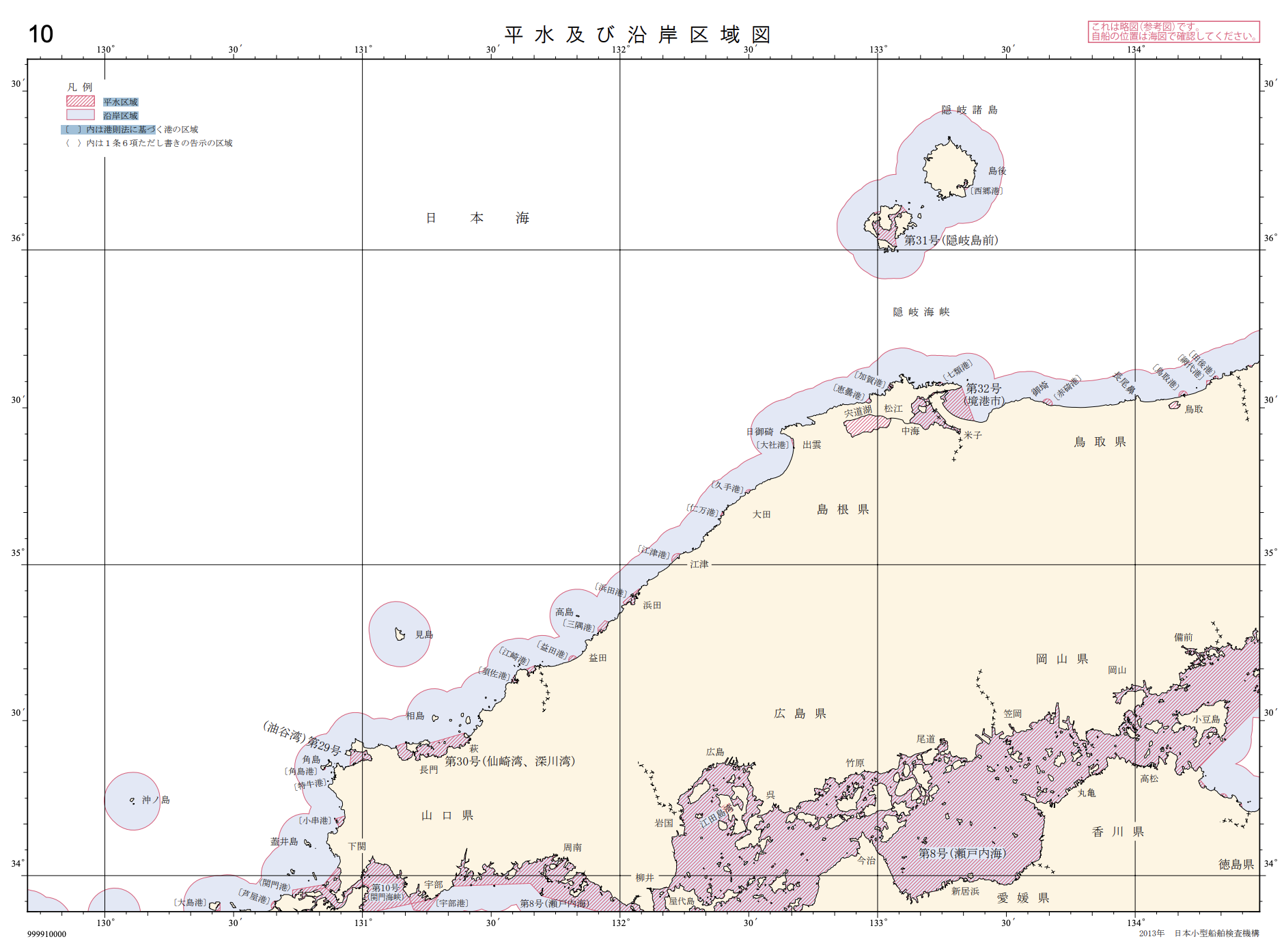 ここで日本小型船舶検査機構(JCI)のHPで山口県の平水区域及び沿岸区域を確認してみます。