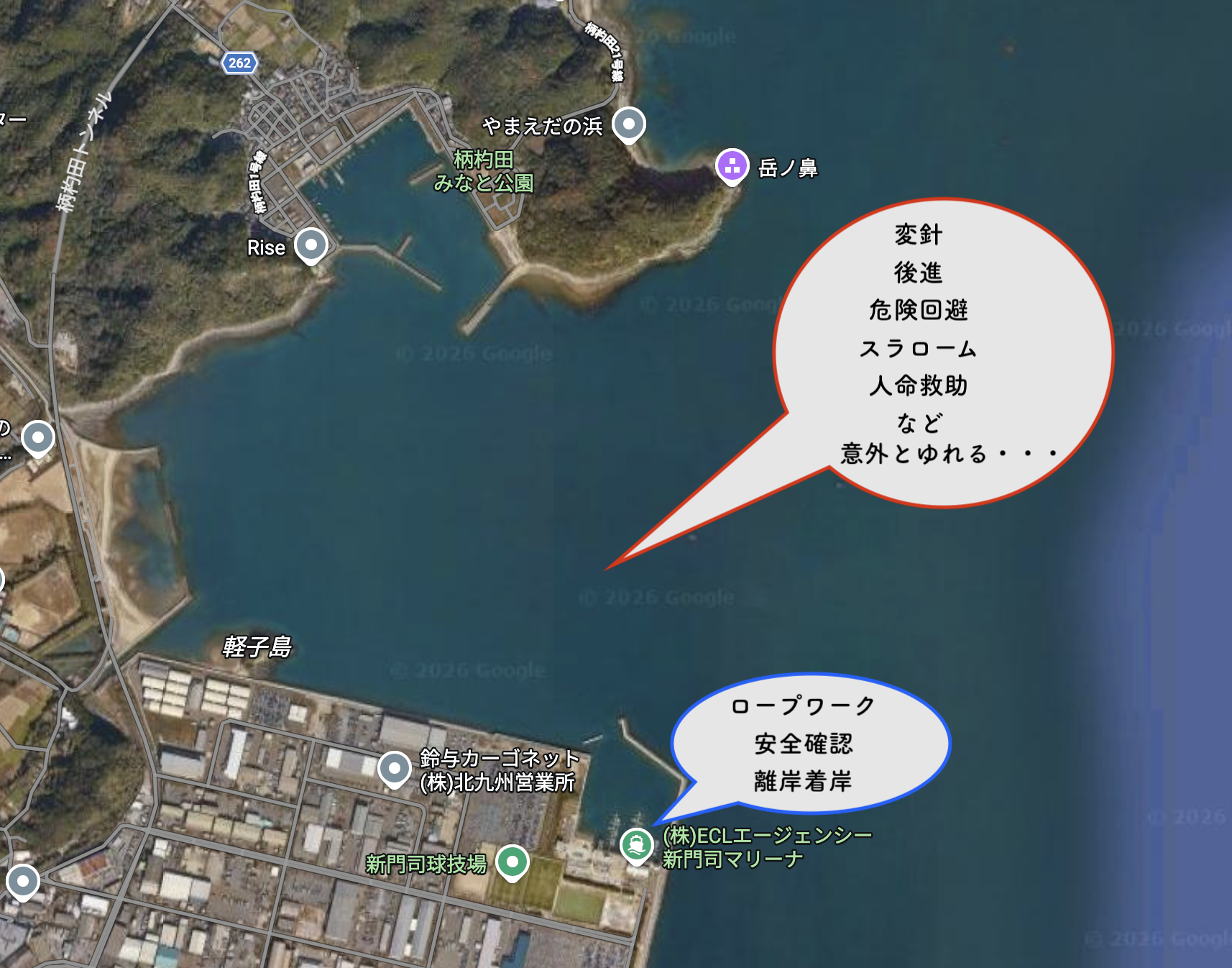 実技で最も大切なのは「安全確認」だと感じました。何かの動作をとる前には常に船の周囲を声を出しながらチェックしてから動作にうつるというイメージ。とにかくこれが大事だと思います。