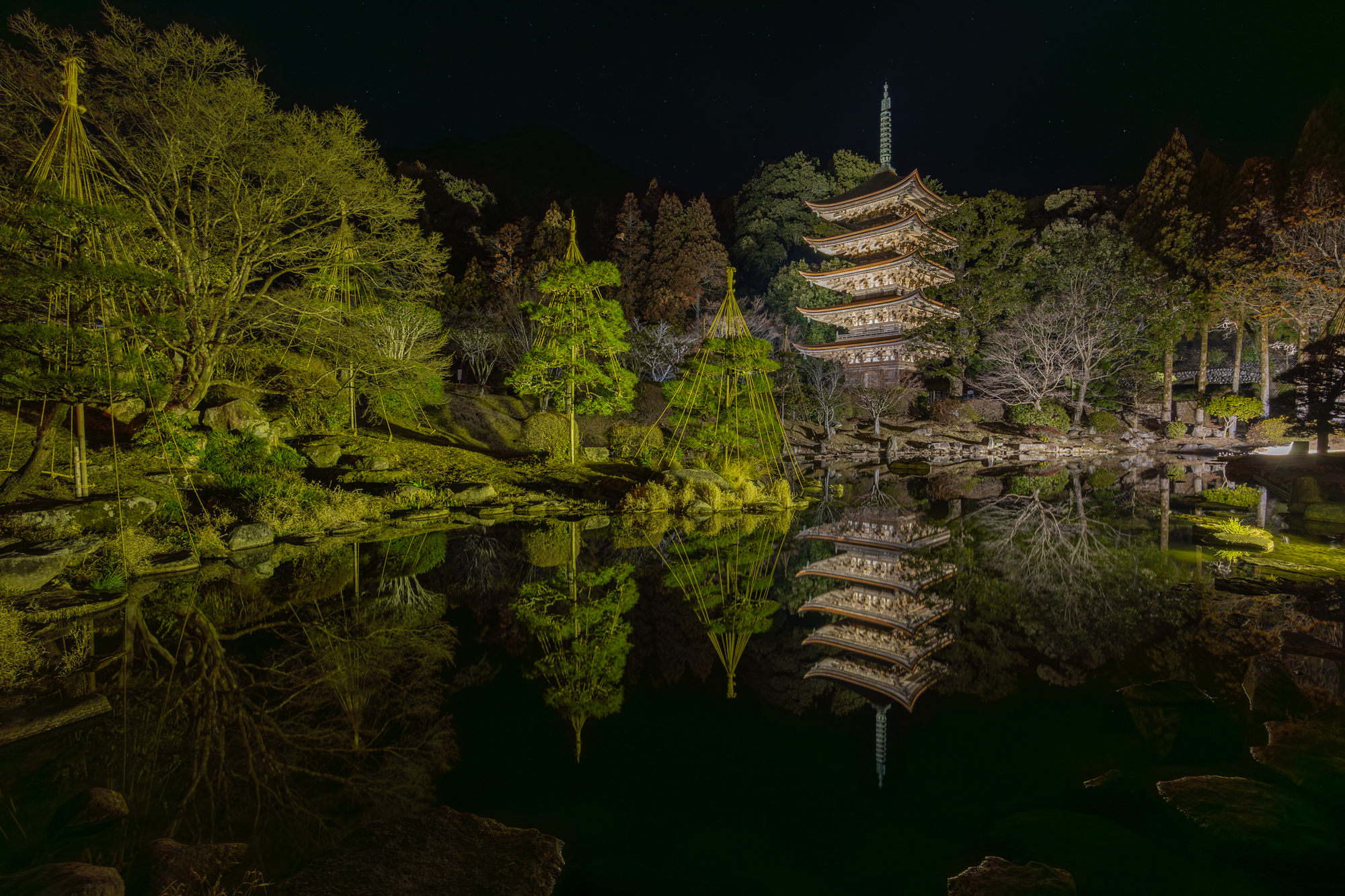 先日、(2026年2月21日)山口市にある瑠璃光寺の五重塔を日没後に撮影してきました。
