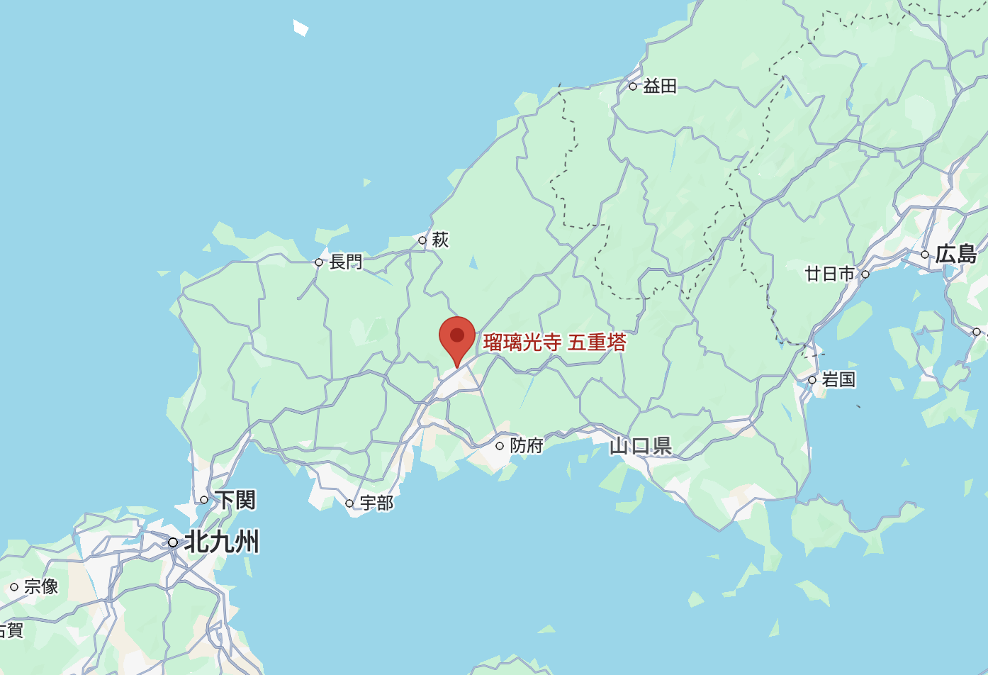 瑠璃光寺は山口市の中心部、山口県庁のほど近くに位置しています。