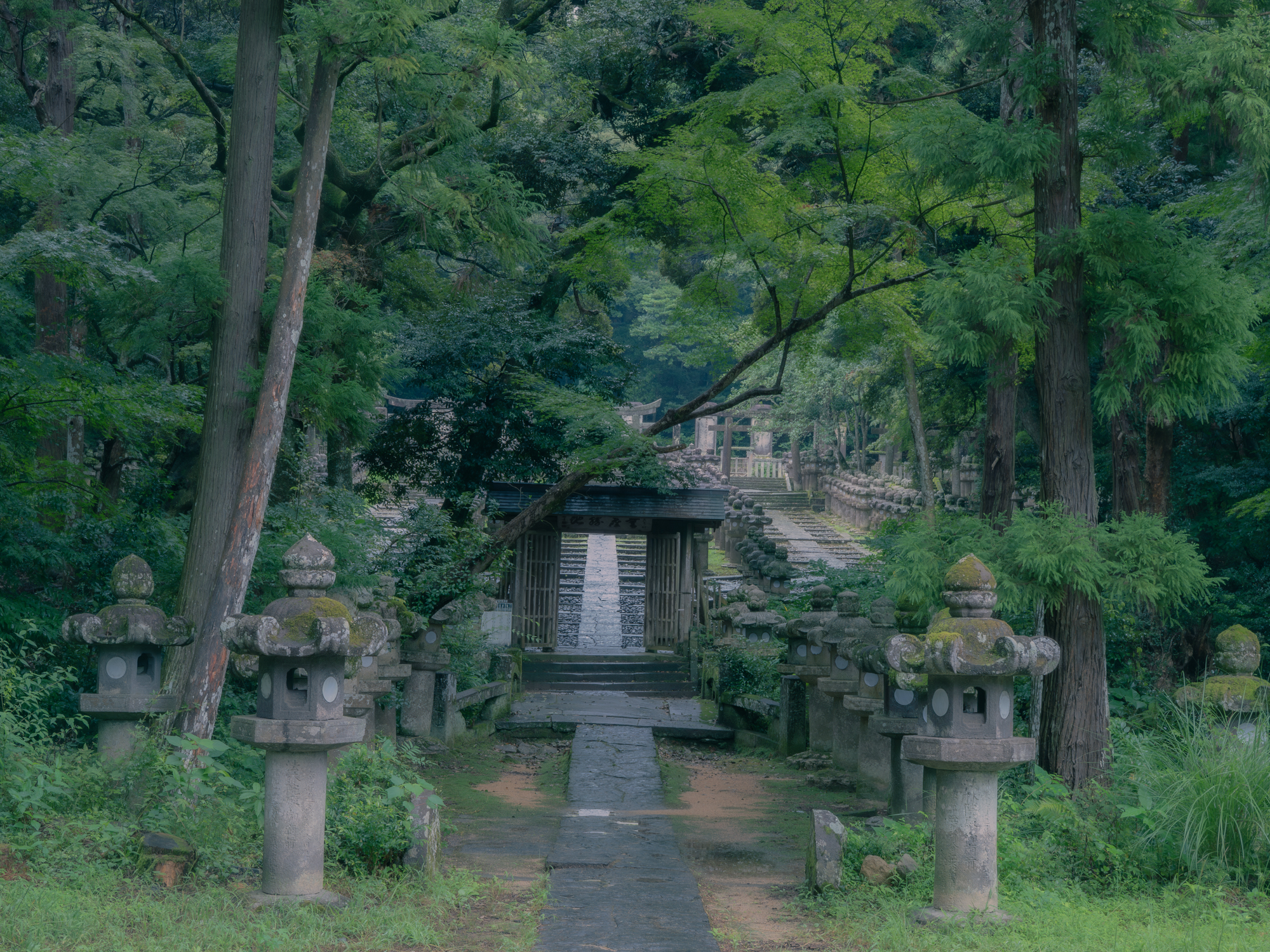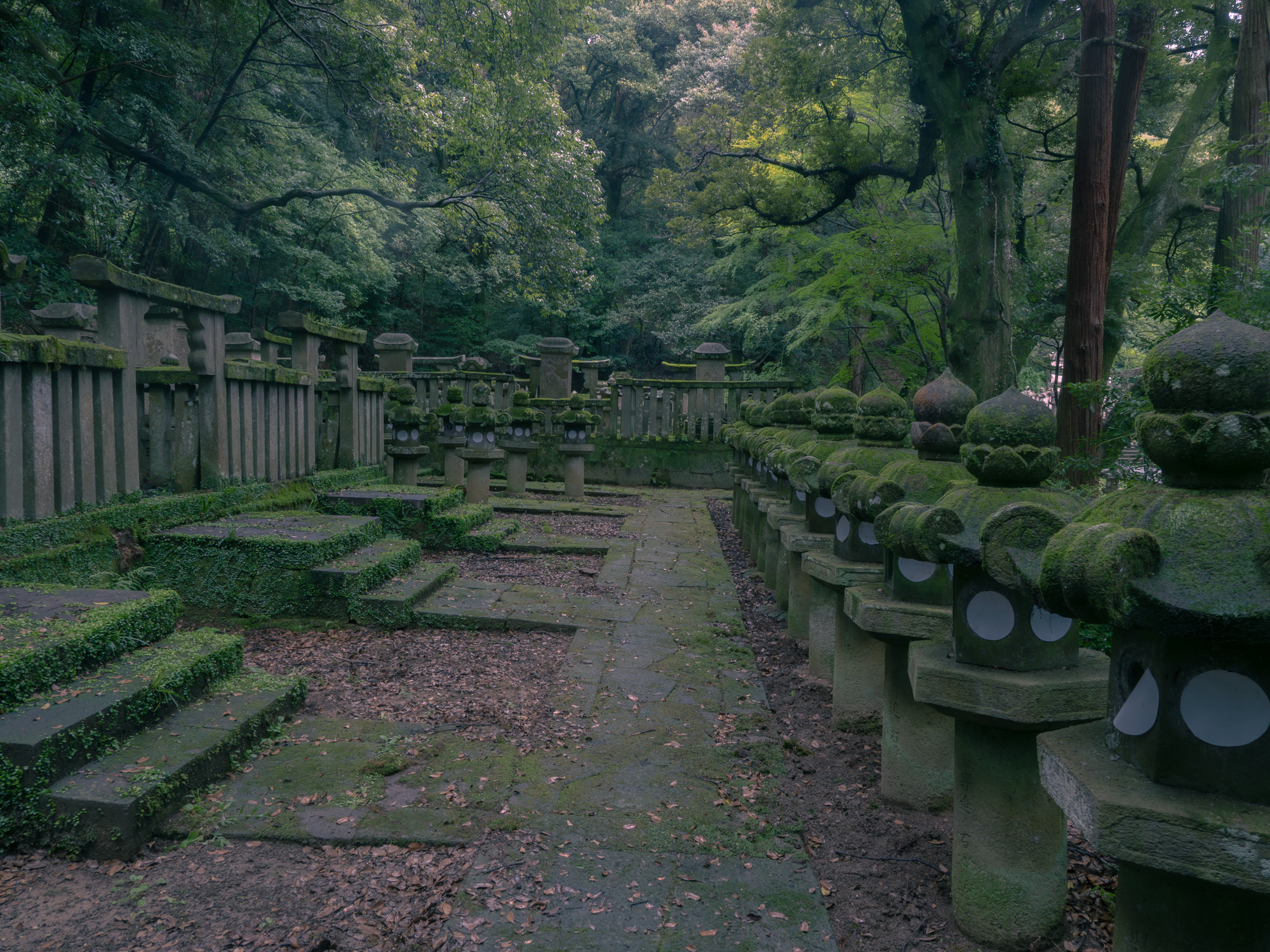 しかし、この日の雨の影響で石畳と草木のしっとりとした質感が際立ち、500基の石燈籠に囲まれた空間は美しい景色でありながら、同時に畏怖の念すら抱かせる、独特の空気をまとっていました。